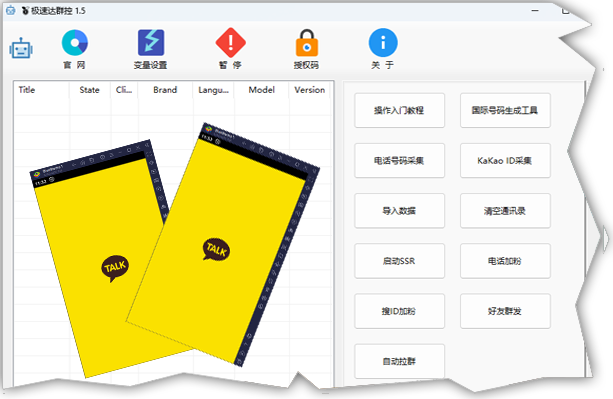 「Kakao Talk」是一款来自韩国的免费聊天软件,在韩国地位相当于中国版的微信,Kakao在韩国使用量居世界第一,网址:www.kakaocorp.com,基于Kakao的强大的用户群体。我们推出了kakao引流营销机器人.kakao引流营销机器人是一款自动化加粉引流软件,软件支持自动搜索韩国电话号码,自动搜索KakaoID,自动加好友,自动加粉,自动群发,自动拉群,自动导入通讯录等等.....